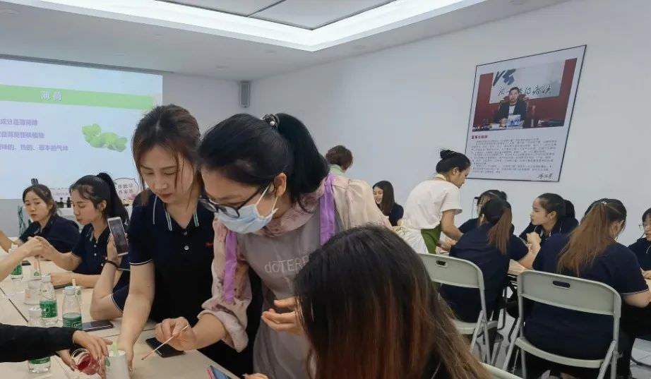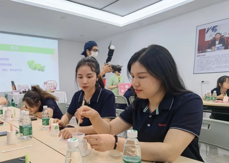 當天下午,公司員工為即將到來的母親節開展了一場精油唇膏手作活動。